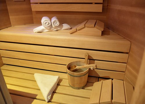 - Ruime sauna met comfortabele zitplaatsen en een rustgevende sfeer
